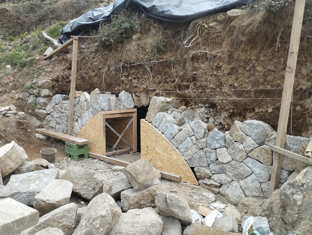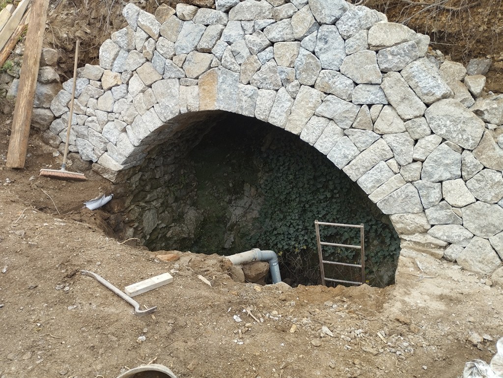 Restauration d’une partie de la voûte d’une gourgue. Pierre sèche. Granit.